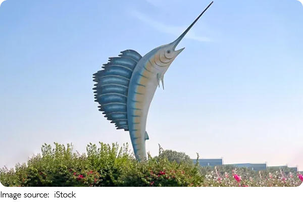 Huge Sailfish Statue in Umm Al Quwain Roundabout, UAE